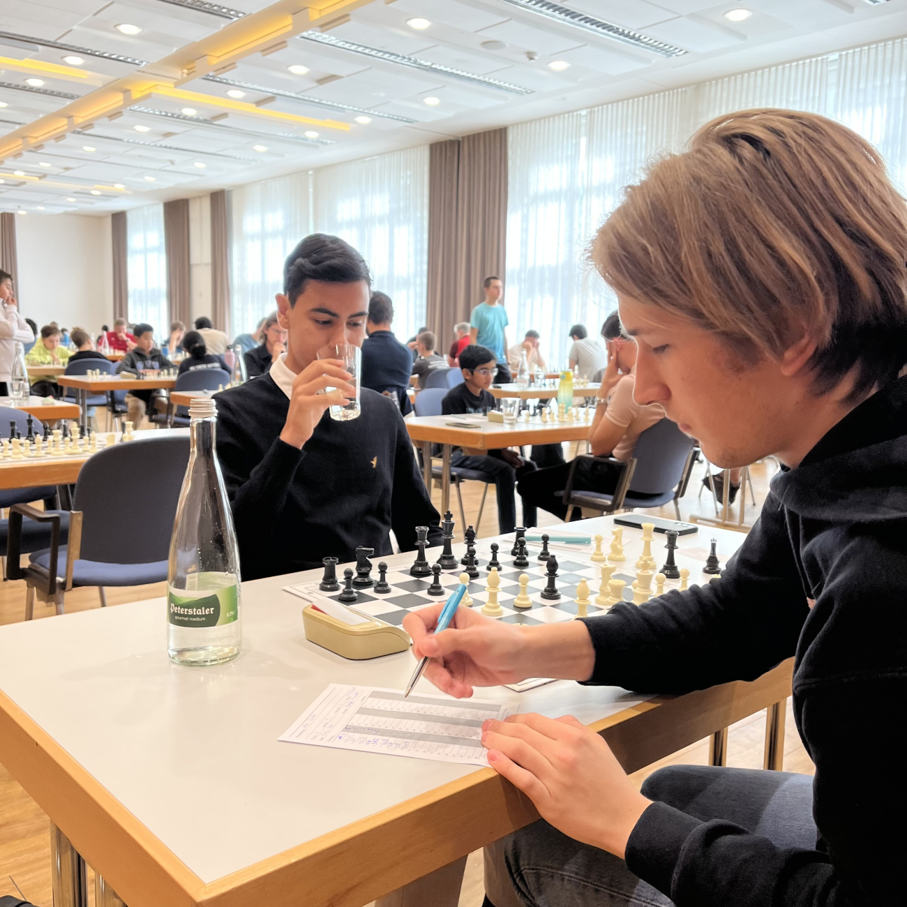 Nicht nur am Brett, sondern auch organisatorisch war Marco Prillwitz im Einsatz. Beim Aufbau des Turniersaals, mit Brettern, Figuren und Uhren, trug er zum reibungslosen Ablauf bei – ein Engagement, das im Hintergrund oft unbemerkt bleibt, aber entscheidend für das Gelingen ist.