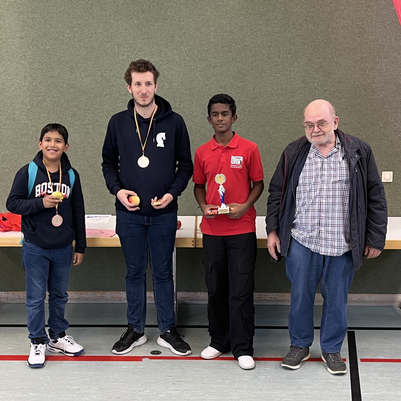 Thanusan Sathanandarajah zeigte eine überragende Performance und ließ keinen Zweifel daran, dass er ebenfalls zu den Besten seiner Altersklasse gehört. Mit geschickten Kombinationen und einer soliden Eröffnungsstrategie sicherte er sich den verdienten Sieg in seiner Gruppe. Diesmal gelang ihm auch endlich der Sieg gegen den Bezirksleiter Wolfgang Tölg aus Stuttgart.