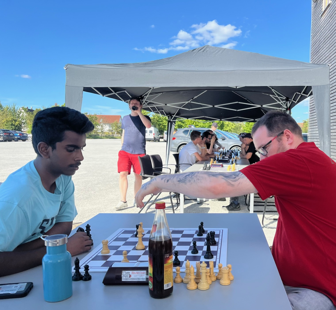 Schwäbisch Gmünd, 10. August 2024 – Bei strahlendem Sonnenschein und angenehm warmen Temperaturen fand heute das mit Spannung erwartete Freiluftblitzturnier in Schwäbisch Gmünd statt. Schachbegeisterte aus der ganzen Region strömten in den malerischen Himmelsgarten, um an diesem besonderen Event teilzunehmen oder den spannenden Partien als Zuschauer beizuwohnen. Das Turnier, das von der Schachgemeinschaft Schwäbisch Gmünd organisiert wurde, zog sowohl erfahrene Spieler als auch junge Talente an. Mit einer Bedenkzeit von nur fünf Minuten pro Partie war schnelle und präzise Denkweise gefragt, was für zahlreiche aufregende und dramatische Momente sorgte.